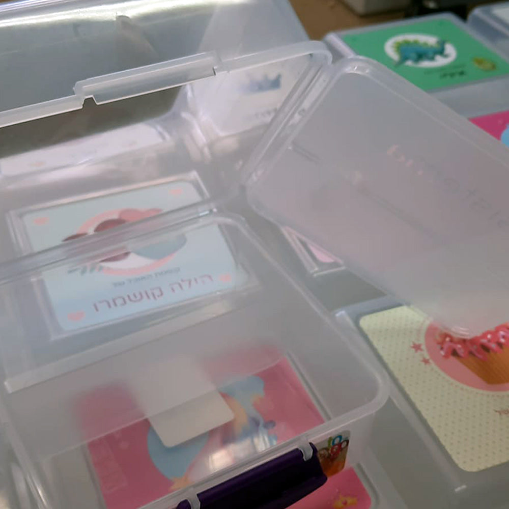 אנחנו מציעים אפשרות להדפיס שם או כיתוב אישי על גבי הקופסאות.