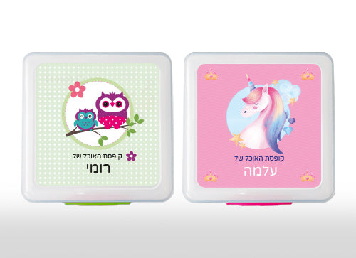 היתרון המיוחד של קופסאות האוכל שלנו הוא האפשרות להדפיס עליהן תמונה, שם וכיתוב אישי.